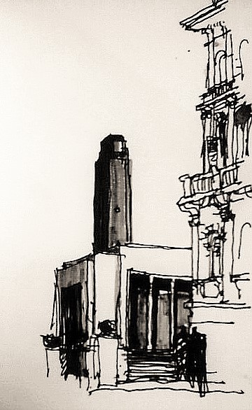 Iglesia de San José Del Rincón, Plaza Gral. López. Dibujo de Anibal Cabrera.